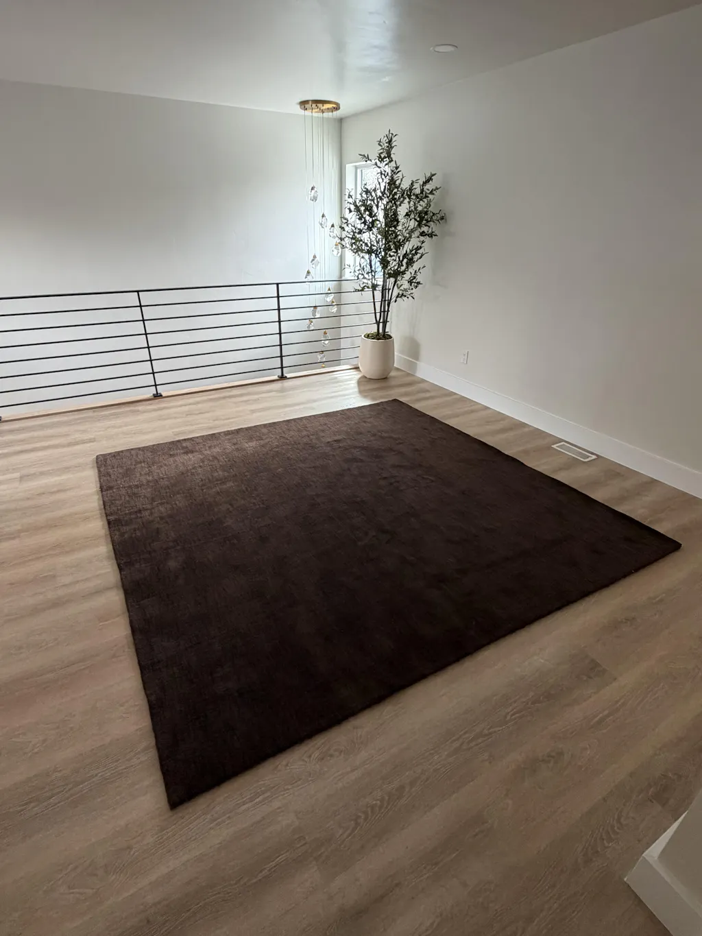This is an absolutely fabulous chocolate brown rug. Right out of the box it is beautiful and fix. Of course there is some shedding but that's normal with a hand knotted premium rug. For the price point for an 8 x 8 rug, I can't think of a better deal out there. We are enjoying this in our living room every day. Will add some pictures soon!