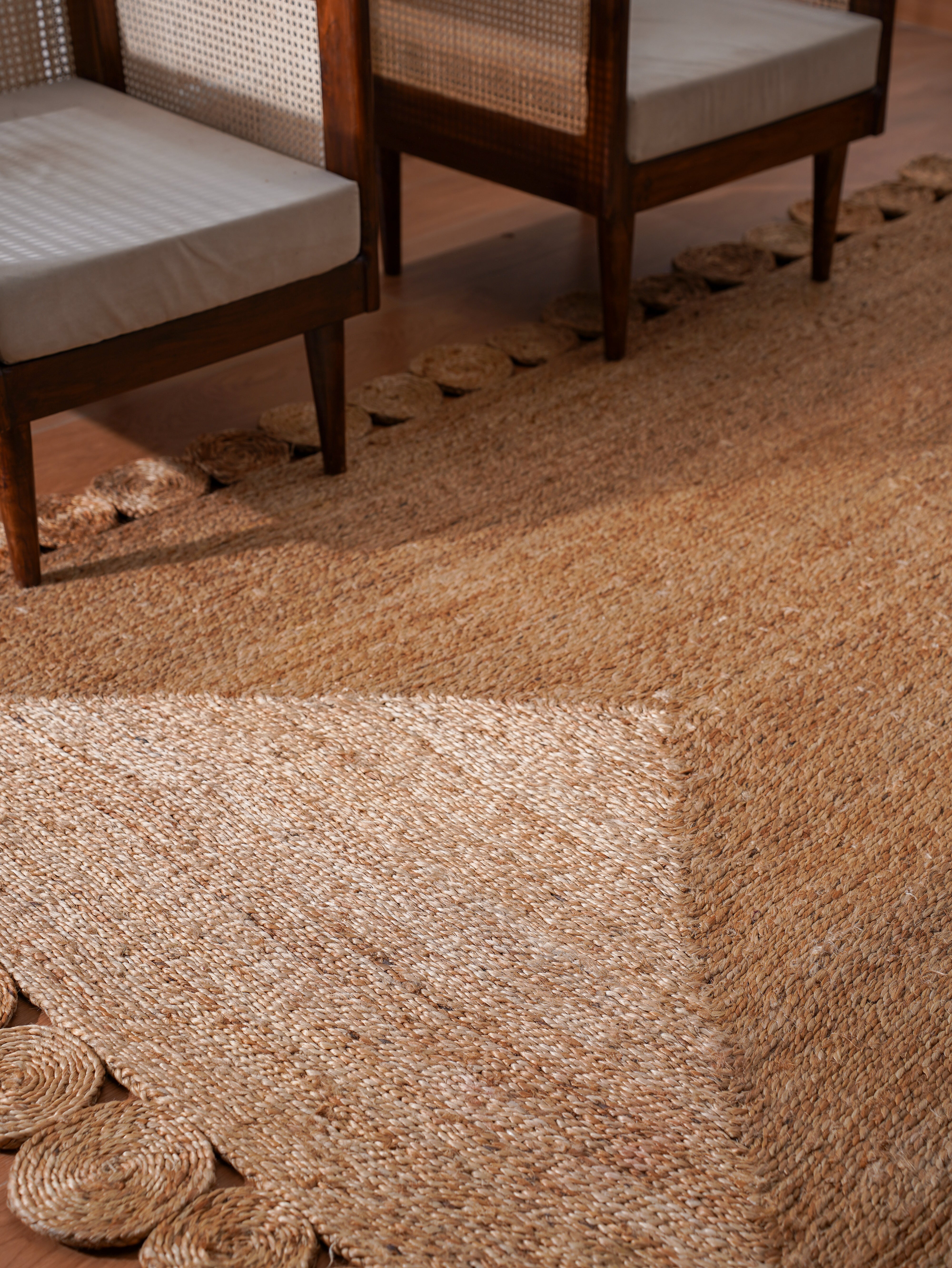 Material Description Jute is one of the most affordable natural & eco-friendly fibers in existence and also used for weaving rugs. The jute material is strong enough to tolerate the large footfall without much cleaning on daily basis and can be used both indoor and outdoor. The cost of such rugs is reasonable. |